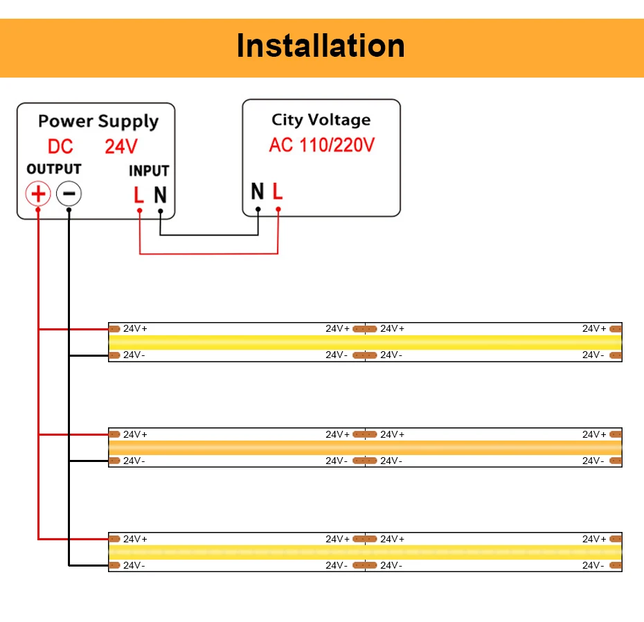 1. La luce di striscia COB non può connettersi direttamente a AC 110V/220V, deve aggiungere un trasformatore DC 24V!
